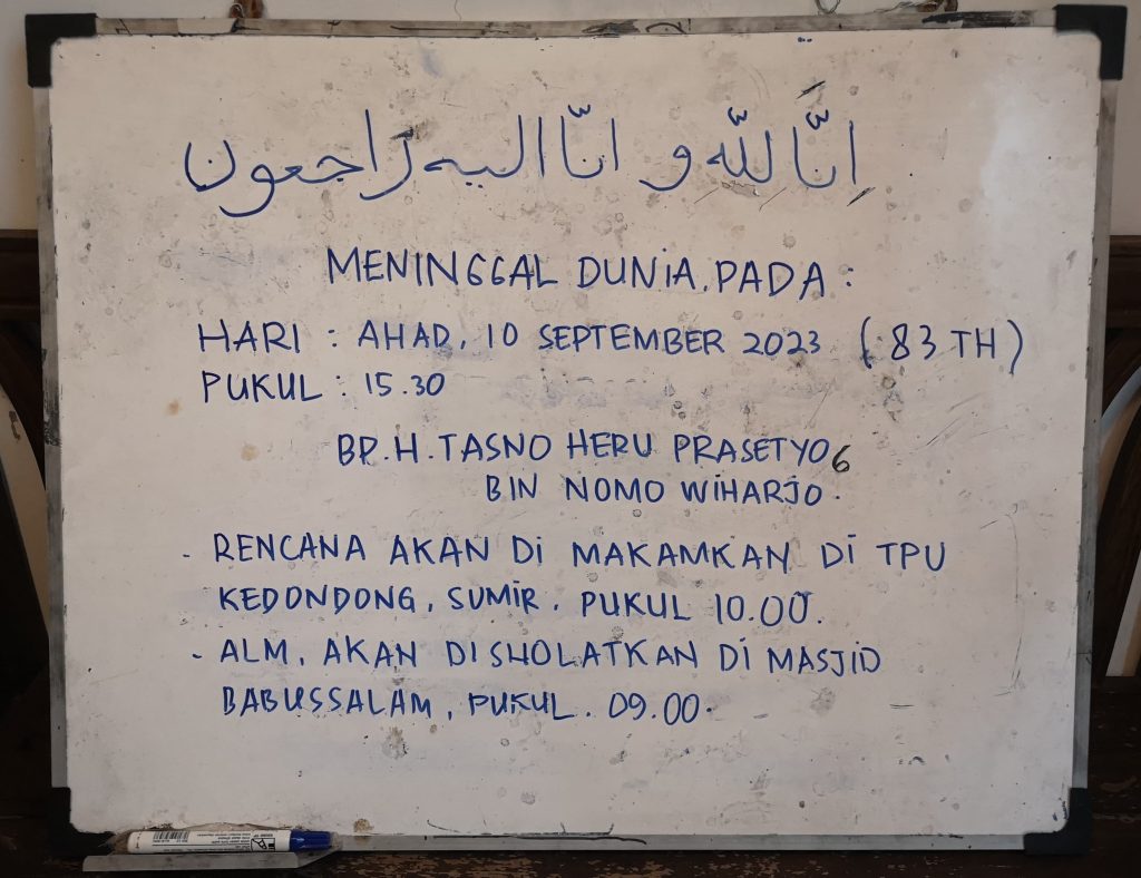 Berita Duka Wafatnya Almarhum Bapak Tasno 10 September 2023